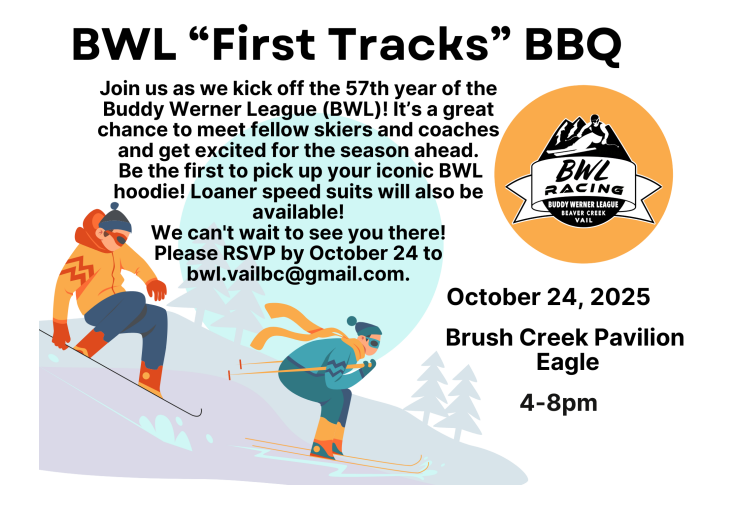 A longstanding recreational alpine ski racing program, the Buddy Werner League (BWL) was founded more than 55 years ago on Meadow Mountain in Minturn. As a local nonprofit, BWL depends on volunteer ski coaches, sponsors, and grants to thrive. The program operates out of Beaver Creek for a total of 10 Saturdays/Sundays each season, welcoming skiers in 2nd - 8th grades with a skill level of 5 or higher, up to a limit of 250 participants.
